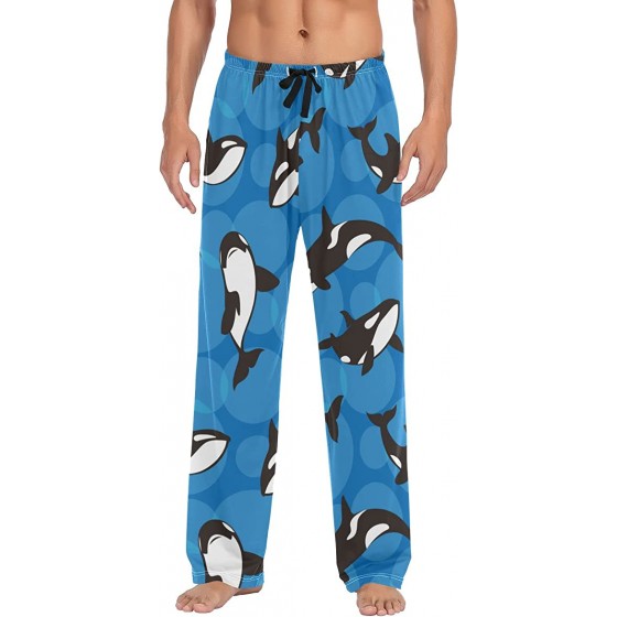 Men's Pajama Pants with Pockets Sleepwear Lounge Pants Stretch Casual Orca Killer Whale on Blue Background