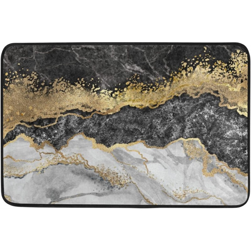 Bath Mat Rugs for Bathroom Non Slip Door Mats Washable Toilet Gold Black Marble Absorbent Memory Foam Indoor 23x15 Inch Small